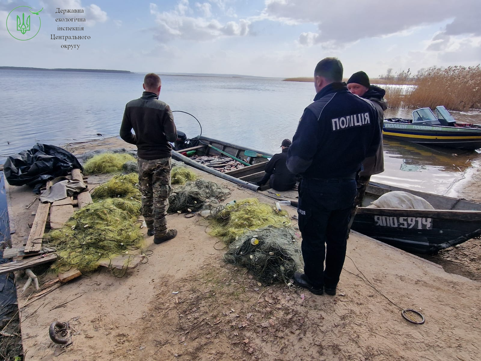 документування правопорушення. Човен, заборонені знаряддя лову (сітки) та